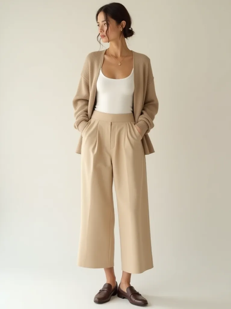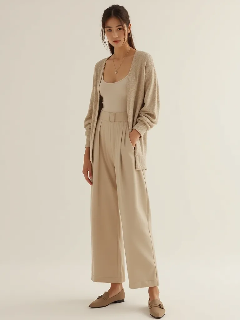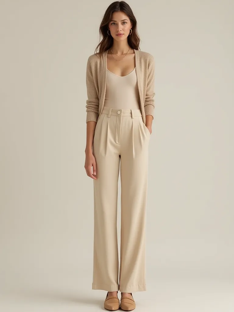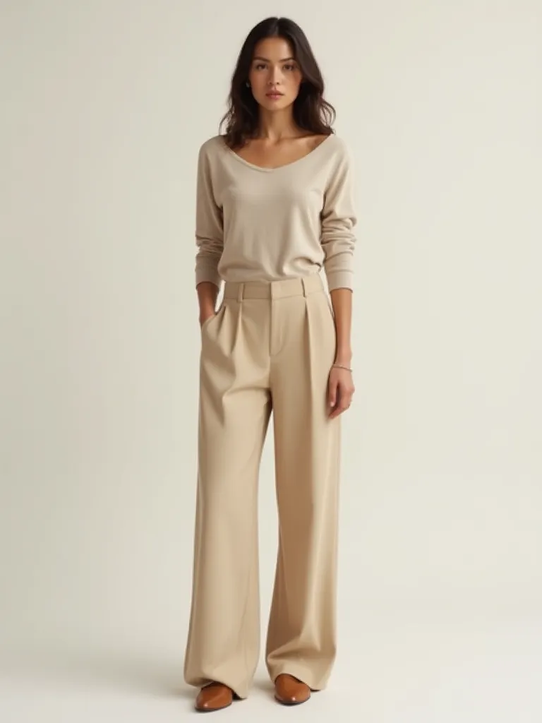 Poliester pantalone širokih nogavica u bež boji