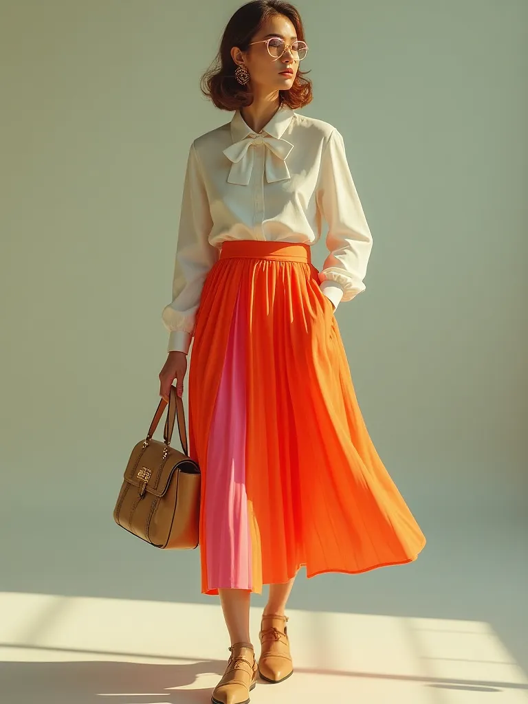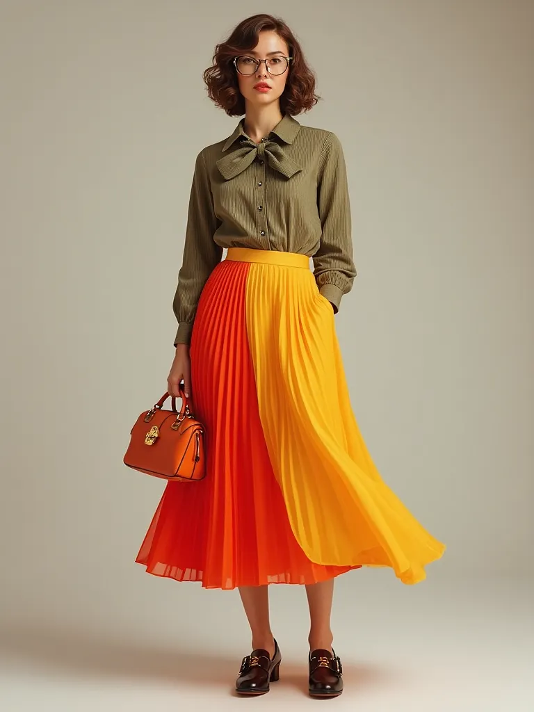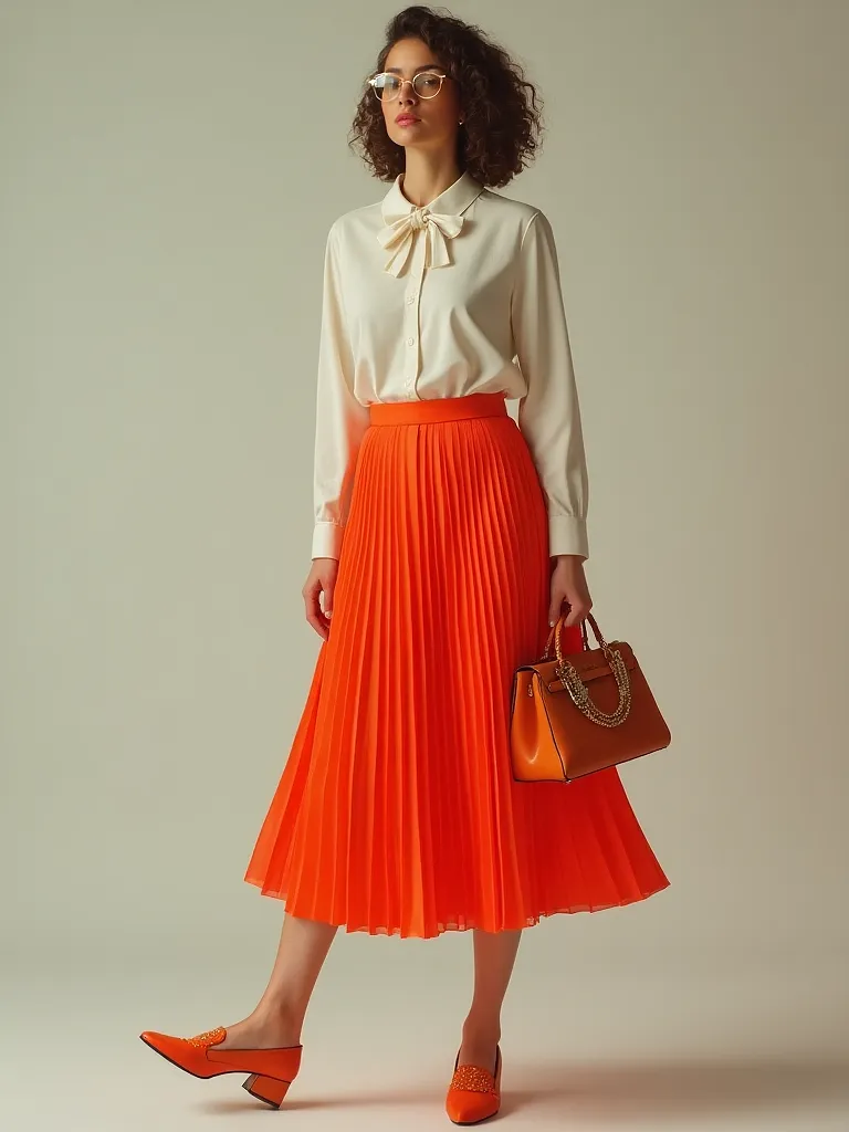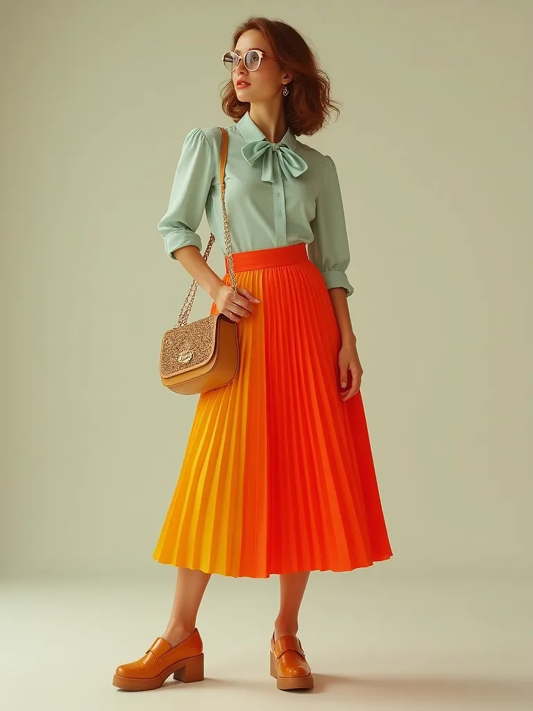 Midi suknja od plisiranog poliestera u jarkoj boji